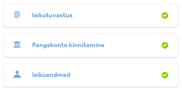 Kuni Sa nimetatud kolme sammu lõpetanud ei ole, pole meil võimalik kasutajakontot lõplikult kinnitada. Veendu, et oled teinud kõik kasutajakonto kinnitamiseks vajalikud toimingud.